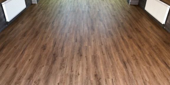 The floor was installed and allowed to settle for 48 hours to ensure the adhesive has completely dried.