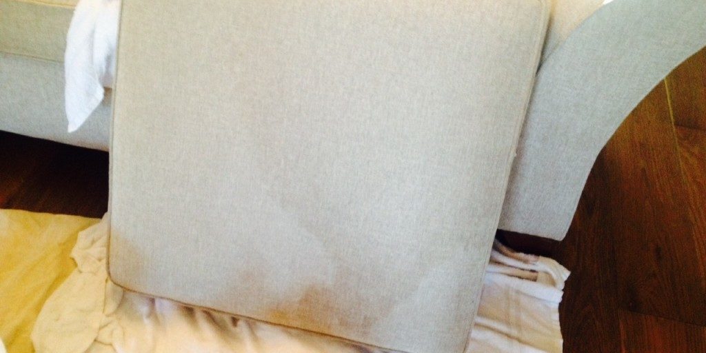 We got a call out today to have a look at sofa which had been involved in a flood from a leaking bathroom. Water had dropped from the ceiling onto the sofa creating water marks along with some red wine stains.